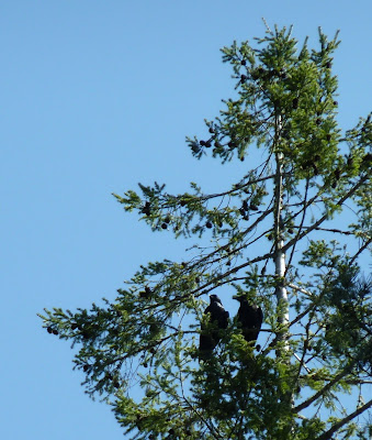 I’m not sure who the victims were in this tragedy. It could have been any of the forest sparrows or robins or finches who nest in the redwoods around my house. All I know is, this morning when I woke up, it sounded like Bird Armageddon out there. I walked outside just in time to see one of the ravens swoop right over my head with a baby chick in its beak - legs kicking, desperately cheeping away the last moments of its life. The other raven was still raiding the nest and cawing out in delight. Meanwhile, all of the other species of birds within a quarter-mile of my place were having a collective bird meltdown. Very grim. Especially considering that there’s some perfectly good peanuts on that stump over there.